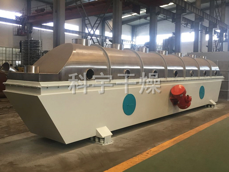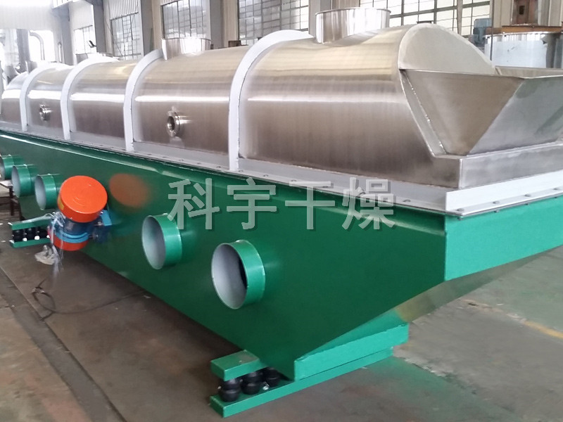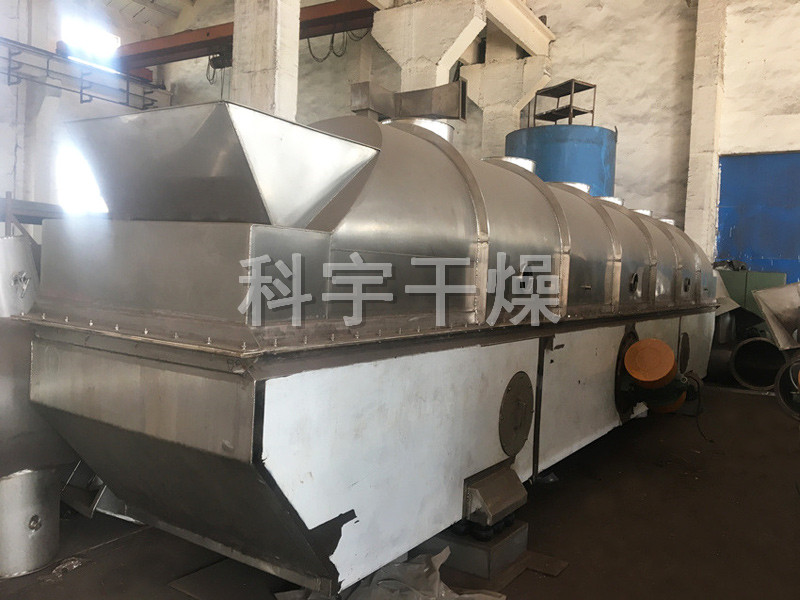 物料自進(jìn)料進(jìn)口進(jìn)入機(jī)內(nèi),在振動(dòng)力作用下,物料沿水平面流化床拋擲,向前連續(xù)運(yùn)動(dòng),熱風(fēng)向上穿過(guò)流化床同濕物料換熱后,濕空氣經(jīng)旋風(fēng)分離器除塵后由排風(fēng)1:3排出,干燥物料由排料進(jìn)口排出。