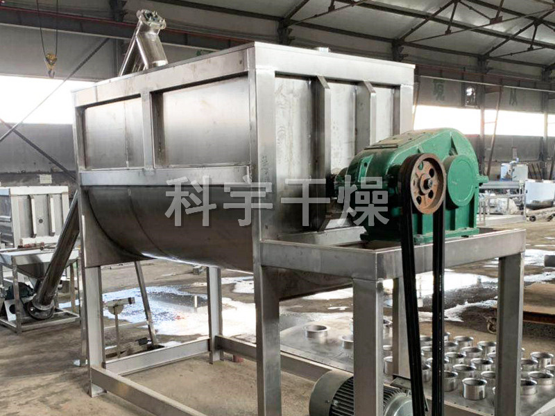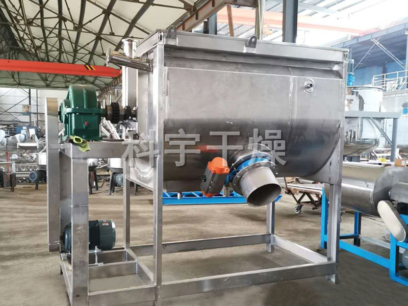螺帶混合機(jī)一般用于粘性或有凝聚性的粉粒體的混合以及粉粒體中添加液體及糊狀物料的混合,同時由于粘性物料清洗困難的特點,適用于產(chǎn)量大、不經(jīng)常更換品種的場合混合。