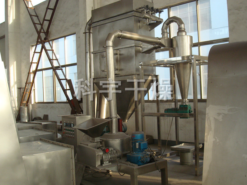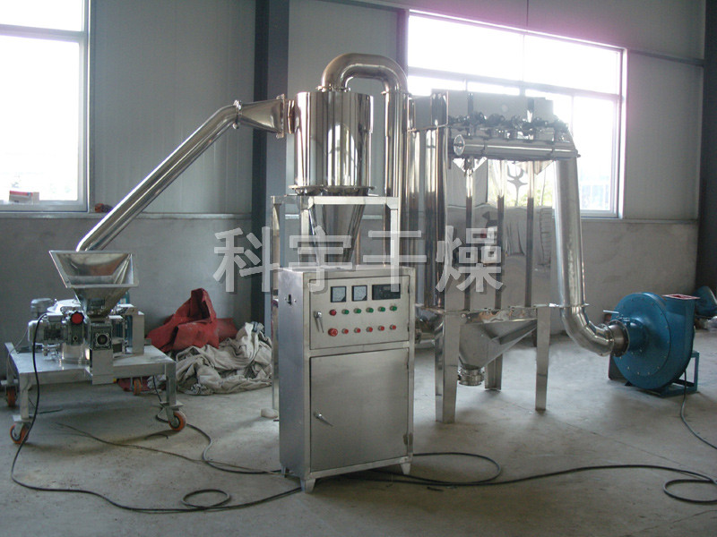本機由主機、輔機、電控箱三部分組成,具有風選式,無篩網,粒度均勻等多種性能,生產過程連續(xù)進行,適用于制藥、化工、食品等行業(yè)脆性物料的粉碎。