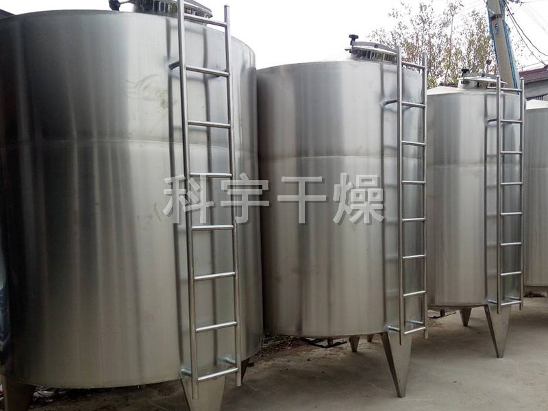 根據(jù)貯存能力不同由1000-15000L,貯罐能力在20000以上的貯罐,建議使用室外貯罐,貯罐使用SUS304不銹鋼制成,根據(jù)罐類設(shè)計要求可附帶裝置如下:攪拌器,進(jìn)、出料口,人孔,溫度計,液位指示器,高、低液位報警孔,防蠅、防塵呼吸氣孔,計量器