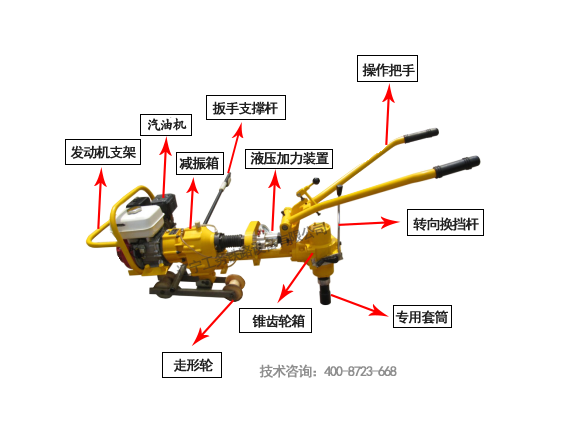 內(nèi)燃液壓螺栓扳手分為單頭的螺栓扳手及雙頭的螺栓扳手,今天為您介紹一款液壓?jiǎn)晤^螺栓扳手型號(hào)為NLB-700,這款機(jī)器適用于鐵路、地鐵及輕軌線路的混凝土軌枕扣件螺母的松緊作業(yè)。本機(jī)采用汽油機(jī)作動(dòng)力,輸出軸為單頭、單速,正反轉(zhuǎn)可調(diào),輸出扭矩可徒手調(diào)節(jié)并明確顯示,整機(jī)操作簡(jiǎn)便,平安可靠,上下道方便。